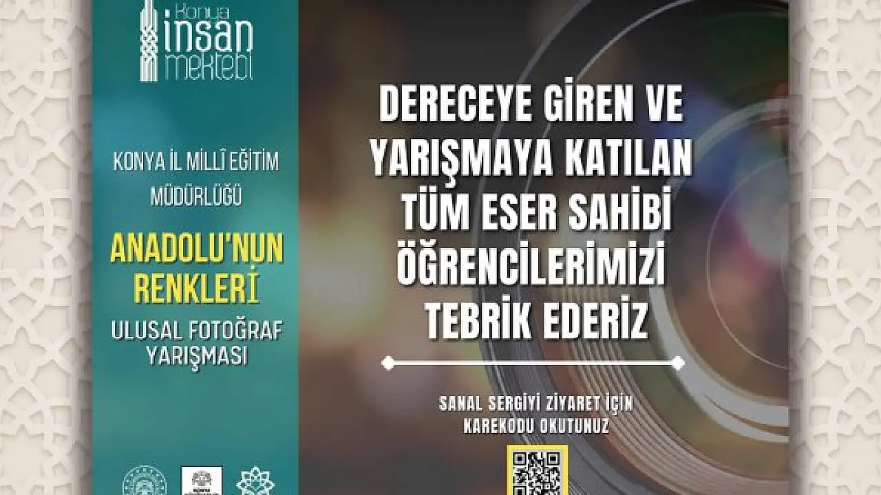 Konya Valiliğinin himayelerinde, Konya İl Milli Eğitim Müdürlüğü tarafından Konya Büyükşehir Belediyesi ortaklığıyla yürütülen Konya İnsan Mektebi Projesi Kültür Davamız kapsamında düzenlenen Anadolu'nun Renkleri Ulusal Fotoğraf Yarışması, yoğun katılımla tamamlandı.