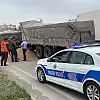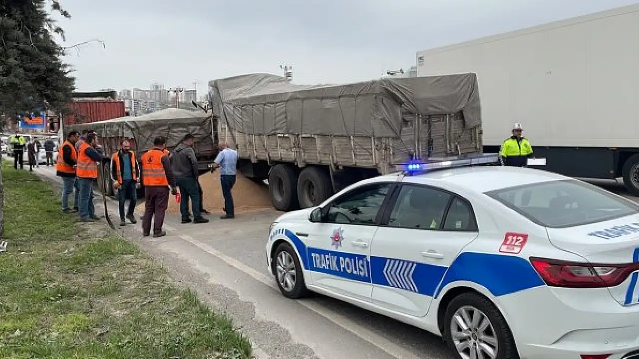 Kamyonun kasasındaki buğday kara yoluna döküldü, Karayolları ekipleri temizlik için çalışma yürüttü.