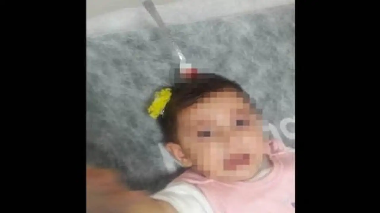 5 yaşındaki ablasıyla oyun oynayan 8 aylık bebeğin kafasına çatal saplandı. Ailesi tarafından hastaneye götürülen minik bebeğin kafasındaki çatalı gören doktorlar adeta şoke oldu.
