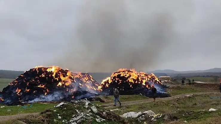 Yangının ardından 8 bin balya tamamen yanarken, jandarma ekipleri de olay yerinde incelemede bulundu.