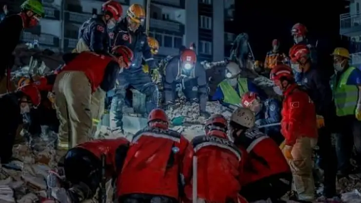 İzmir'in Seferihisar ilçesinde açıklarındaki depremden en fazla etkilenen Bayraklı ilçesinde, 8 binada arama kurtarma çalışmaları devam ediyor.