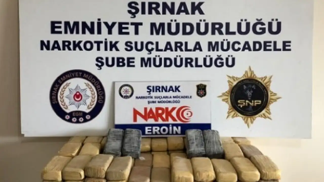 Şırnak'ta düzenlenen operasyonda 82 kilogram eroin ele geçirildi. Olayla ilgili 2 şüpheli gözaltına alındı.