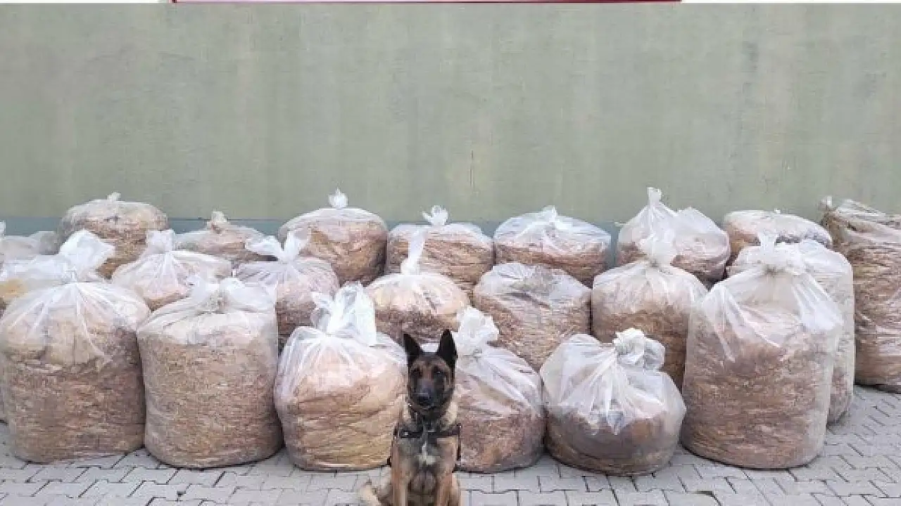 Bingöl'de "Okşan" isimli tütün ve çay arama köpeğinin tepki vermesi üzerine bir araç içinde 850 kilo yaprak tütünü ele geçirildi.