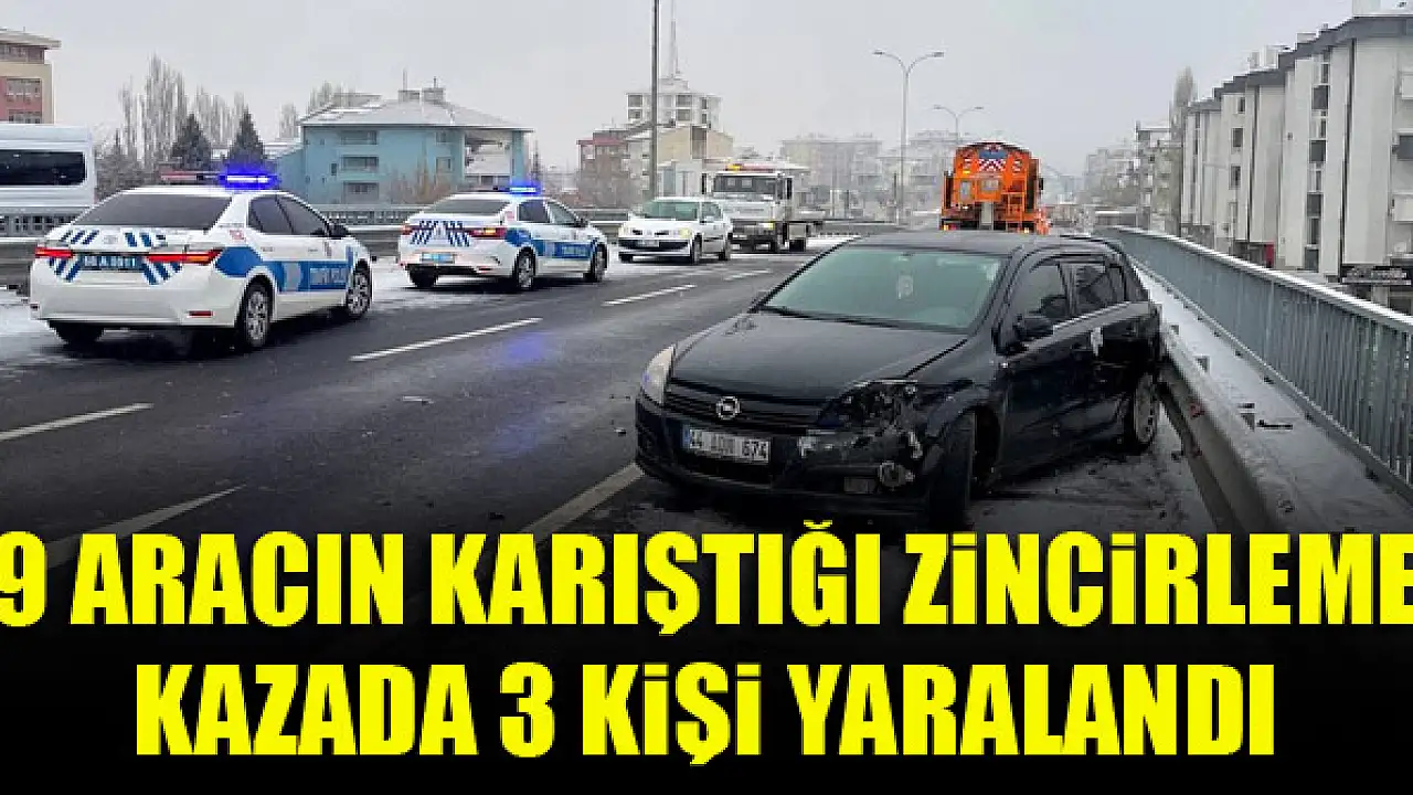 Aksaray'da kar yağışı ve buzlanma nedeniyle 9 aracın karıştığı zincirleme kazada 3 kişi yaralandı.