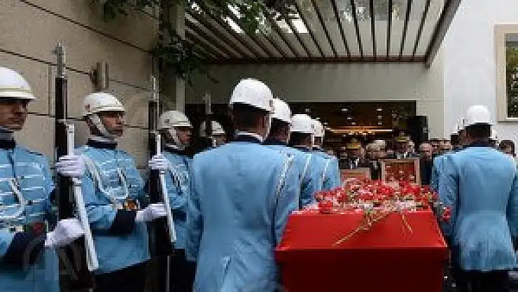 Askeri tören mangası, Türk bayrağına sarılı naaşı evin bahçesine kurulan tören alanına getirdi. Bu sırada vatandaşların ağladığı görüldü.