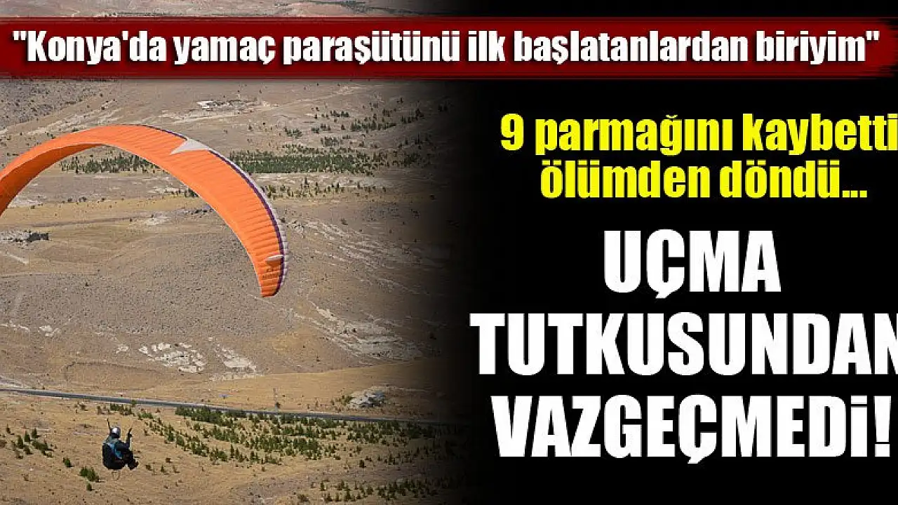 Konya'da yaşayan 67 yaşındaki mimar Hüseyin Çevik, 10 yıl önce gösteri uçuşu yaparken geçirdiği kaza sonucu 9 parmağını kaybetmesine rağmen yamaç paraşütü tutkusundan vazgeçmiyor.