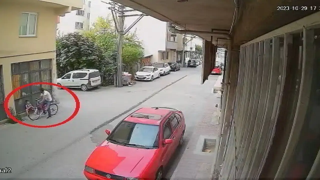 Olay, merkez Osmangazi ilçesi Dikkaldırım Mahallesi'nde meydana geldi. Güvenlik kamerasına yansıyan görüntülerde, arkadaşıyla oturan Trabzonspor formalı 9 yaşındaki Yusuf Emir B., sokak arasında bisikletiyle ilerleyen V.İ'nin önce hakaretlerine, ardından biber gazlı saldırısına uğradı.