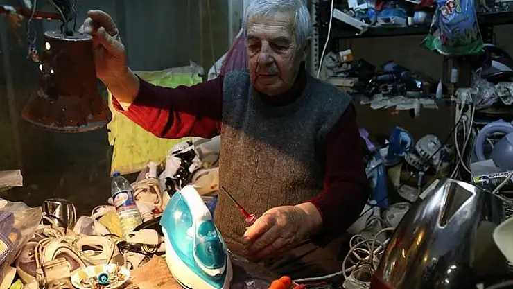 90 yaşında elektrikli ev aleti tamir ediyor