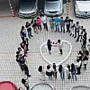 Kalbin içinde fotoğraflanan iki genci arkadaşları da yalnız bırakmadı.