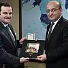 Gündeme ilişkin değerlendirmelerde bulunan Akdoğan'a, AA Yönetim Kurulu Başkanı ve Genel Müdürü Kemal Öztürk, tarafından "AA Oradaydı" serisinin özel koleksiyon baskısının ilk örneği verildi.