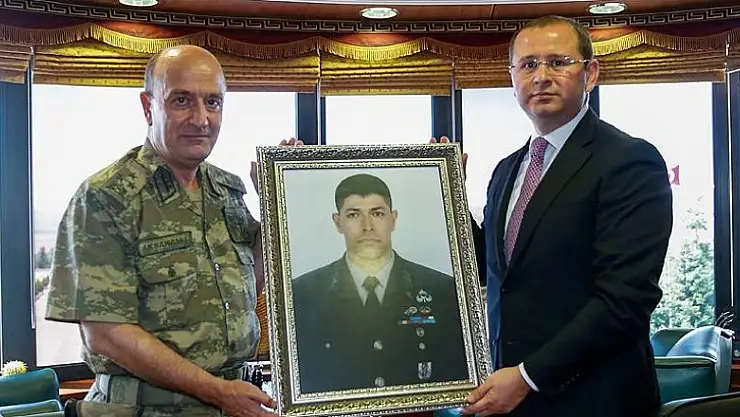 Kazancı, Korgeneral Aksakallı'ya, Halisdemir'in fotoğrafını hediye etti.
