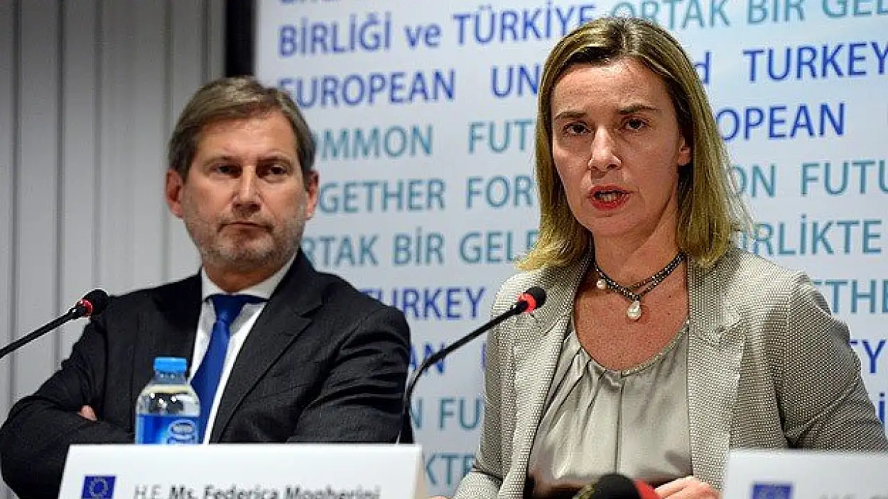AB Dış İlişkiler ve Güvenlik Politikası Yüksek Temsilcisi Federica Mogherini, Komşuluk Politikası ve Genişleme Müzakerelerinden Sorumlu AB Komiseri Johannes Hahn ile İnsani Yardım ve Kriz Yönetiminden Sorumlu AB Komiseri Hristos Stilianidis, Türkiye'deki temaslarının ardından AB binasında basın toplantısı düzenledi.