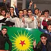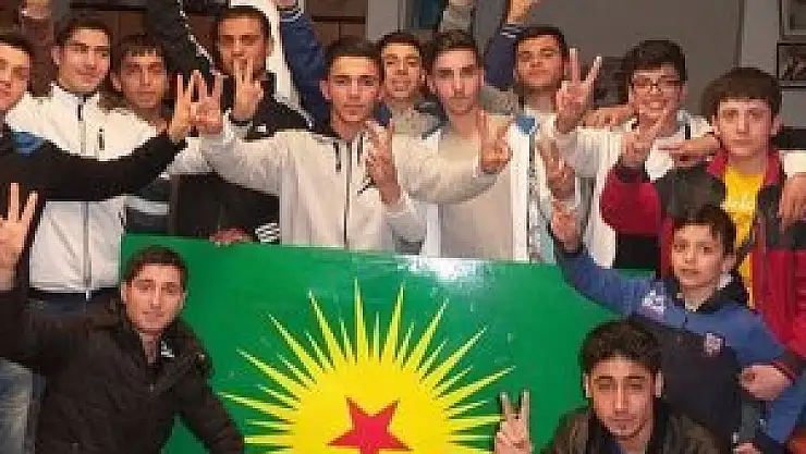Diyarbakır'dan AB fonuyla mesleki eğitim için Almanya'ya giden bir grup öğrenci, PKK'ya ait dernekleri ziyaret edip, zafer işareti yaparak örgütü simgeleyen paçavra önünde poz verdi.