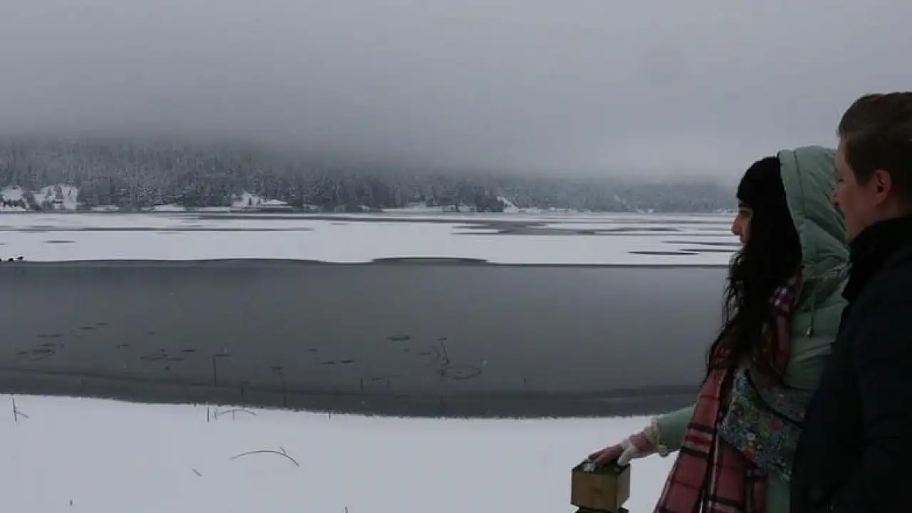 Hava sıcaklığının gece eksi 9 dereceye kadar düşmesinin ardından, tabiat parkında bulunan gölün büyük bölümü dondu.