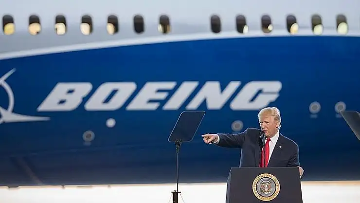 Trump, Boeing’in “787 Dreamliner” model yeni uçağının tanıtımı için firmanın Güney Carolina eyaletindeki tesisini ziyaret etti.