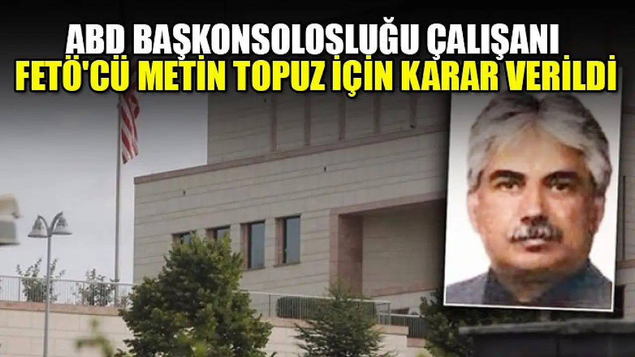ABD Başkonsolosluğu çalışanı FETÖ'cü Metin Topuz için karar verildi