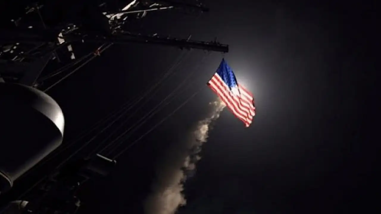 Akdeniz'de bulunan ABD savaş gemilerinden Humus'ta kimyasal silahların bulunduğu öne sürülen Şaryat Hava Üssü'ne 59 Tomahawk füzesiyle vurdu.