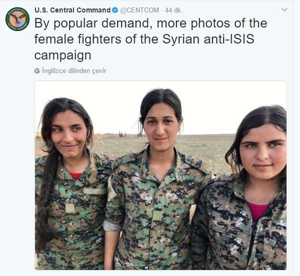 Komutanlığın resmi Twitter hesabından yapılan paylaşımların ilkinde, "Talep üzerine DEAŞ'a karşı savaşan daha fazla kadın savaşçının fotoğrafını paylaşıyoruz." ifadeleriyle birlikte 3 kadının fotoğrafı paylaşıldı.