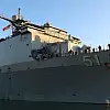 Batum limanına ilk kez gelen savaş gemisi, resmi törenle karşılandı.