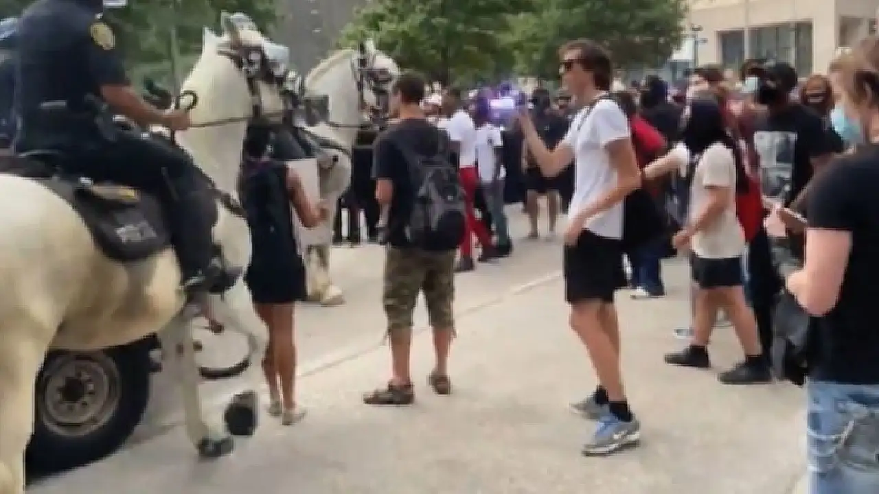 ABD'de George Floyd'un polis tarafından öldürülmesinin ardından çıkan protestolarda atlı polis bir göstericiyi ezdi.