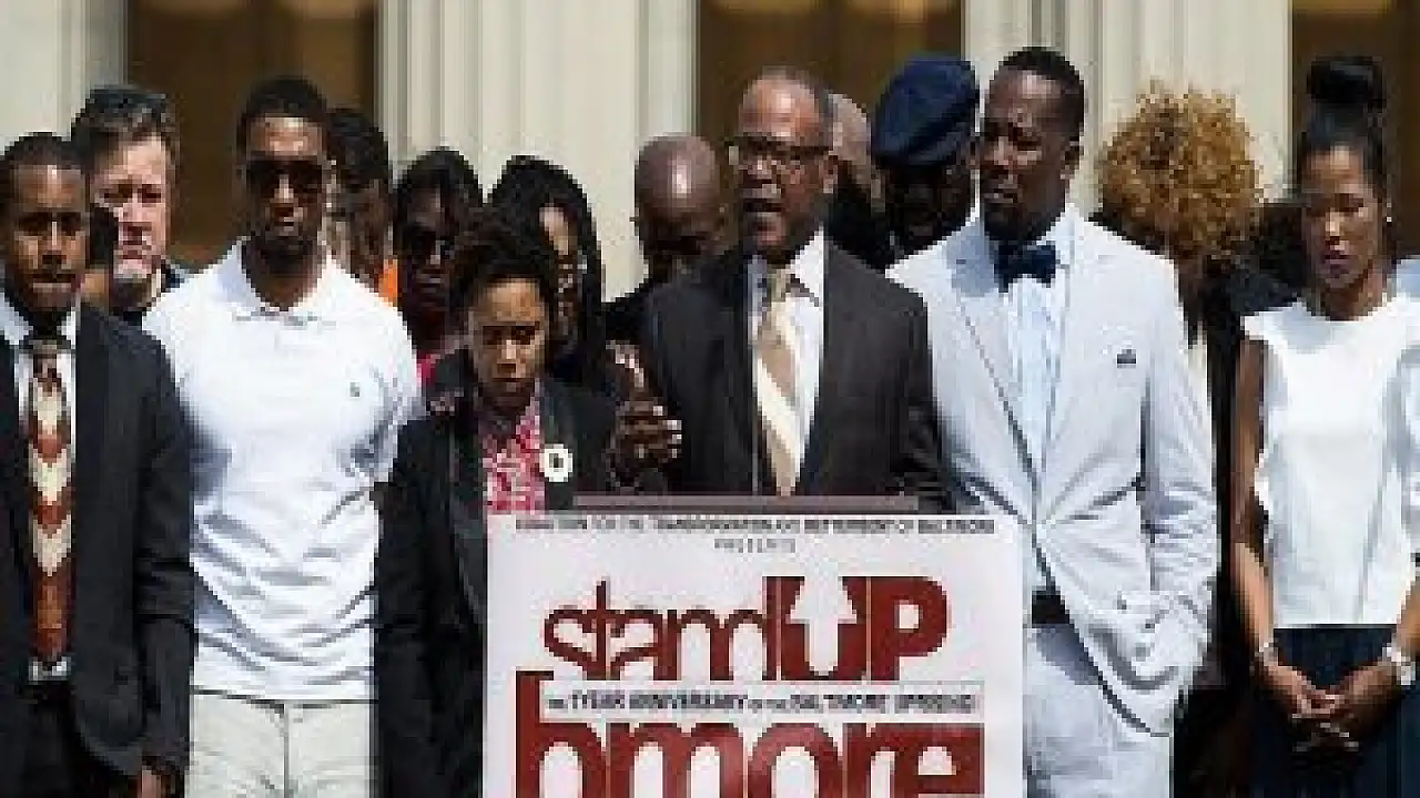 ABD'nin Baltimore kentinde polis şiddeti sonucu hayatını kaybeden siyahi genç Gray'in ölümü sonrasında yaşanan olayların yıl dönümü sebebiyle belediye binası önünde gösteri düzenlendi.