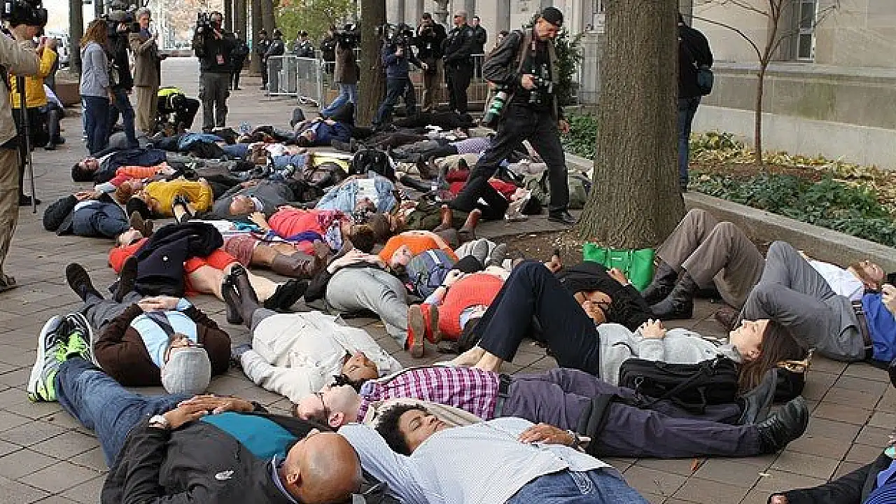 Polisin gözetiminde Times Meydanı'na kadar yürüyen göstericiler zaman zaman Manhattan caddelerini trafiğe kapatmak istedi. Polis tarafından kaldırılıma yönlendirilen eylemcilerden birçoğu gözaltına alındı. Gözaltına alınanlar arasında Olcay Şaşan adlı bir Türk ile bir de basın mensubu olduğu öğrenildi.