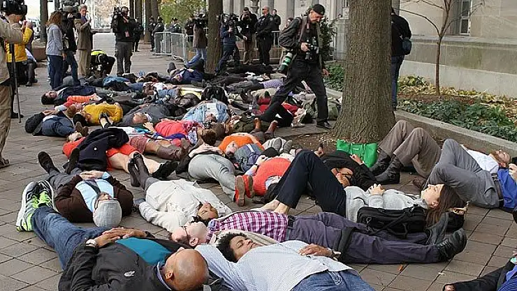 ABD'nin Missouri eyaletindeki St. Louis kentinde silahsız siyahi genç Michael Brown'ı öldüren polis memurunun yargılanmasına gerek görmeyen jüri kararı üzerine New York'ta protesto gösterisi düzenlendi.
