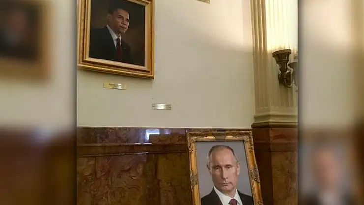 CNN'in haberine göre, kimliği belirsiz bir kişi tarafından, ABD eski başkanları George W. Bush ve Barack Obama’nın portrelerinin yanında Başkan Donald Trump için ayrılan yere bir şövale ile Rusya Devlet Başkanı Putin’in portresi koyuldu.