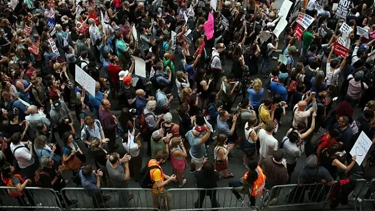Karşıt gösteride, "Siyahilerin Hayatları Önemlidir" (Black Lives Matter) Hareketinin öncülük ettiği 15 binden fazla eylemci ırkçılık karşıtı sloganlaratarak, şehir merkezine yürüdü.