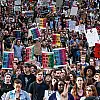 Eylemciler, polis şiddeti mağdurlarının yaptığı konuşmaların ardından gösteriyi demir barikatla çevrelenen meydanın dışına taşımak istedi.