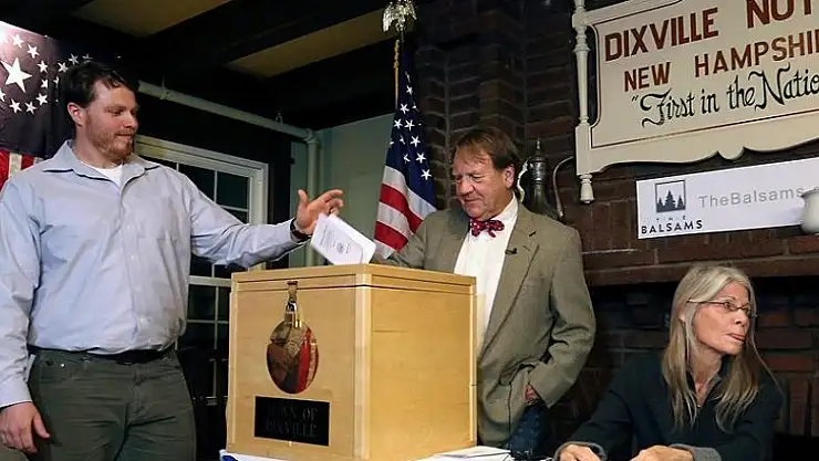 ABD'nin New Hampshire eyalet yasalarına göre, seçmen sayısı 100'ün altında olan seçim bölgelerinde, gece yarısından sonra oy verme işlemi başlayabiliyor ve tüm seçmeler oylarını kullandıktan hemen sonra seçim sonuçları açıklanabiliyor.