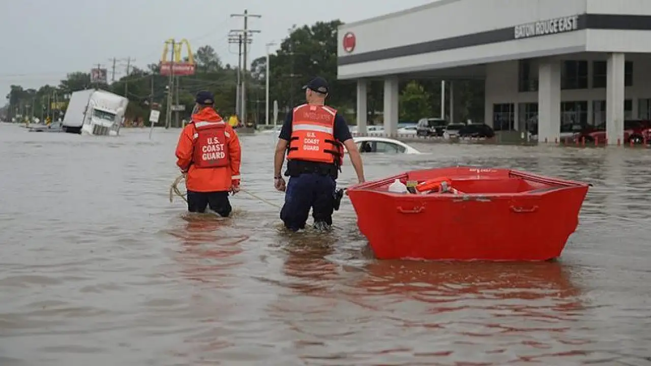 2012'deki Sandy Kasırgası'ndan sonra ABD'deki en büyük doğal afet olarak nitelendirilen Louisiana'daki sel felaketinde birçok ev sular altında kaldı, binlerce kişi barınaklara sığındı.