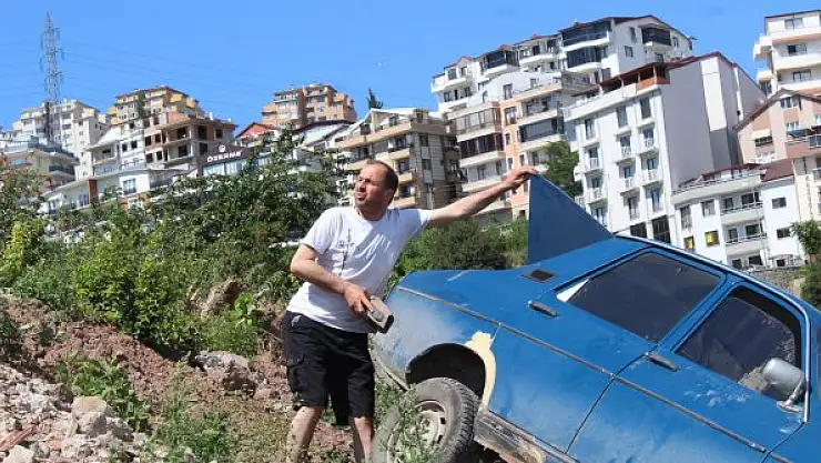 Olay, öğle saatlerinde kentsel dönüşüm projesi kapsamında evlerin yıkıldığı İzmit Cedit Mahallesi'nde meydana geldi. Evlerin yıkıldığı tepenin üzerindeki caminin bulunduğu yere gelen Salih Yılmaz, 41 FF 835 plakalı otomobilini park etti. Yılmaz, daha sonra abdest almaya gitti, şadırvandan çıktığında ise otomobilinin yerinde olmadığını fark etti. Evlerin yıkıldığı alana bakan Yılmaz, aracını yaklaşık 200 metre aşağıda askıda kalmış gördü. Yılmaz'ın yardım istemesi üzerine bölgeye gelen itfaiye ekibi, otomobili halatla tekrar yola çekti. Güvenlik kamerası görüntülerinde, aracın yavaş yavaş ilerleyerek yıkım alanına indiği görüldü. Olayla ilgili tutanak tutulurken, Salih Yılmaz, el frenini çektiğini savundu.