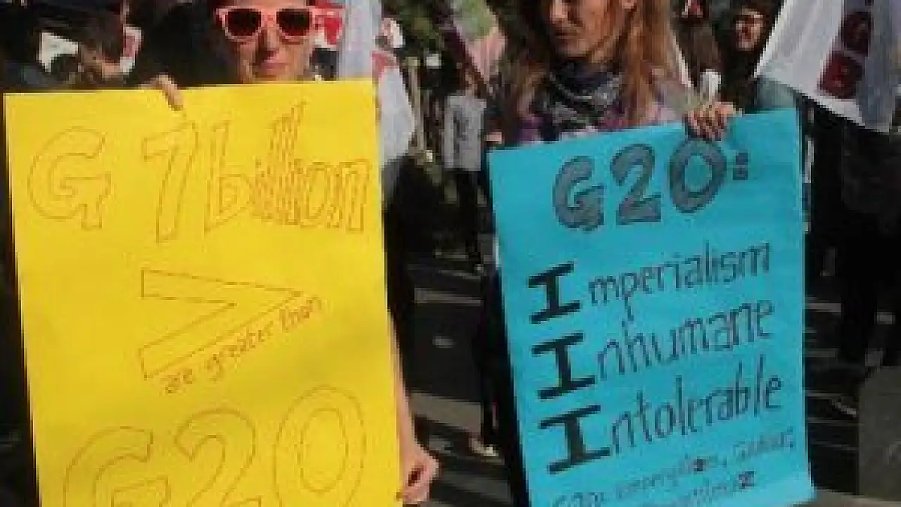 ABD'li iki kadın Antalya'da G20'yi protesto etti
