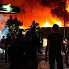 Kısa bir süre sonra ise restoran göstericiler tarafından ateşe verildi.
