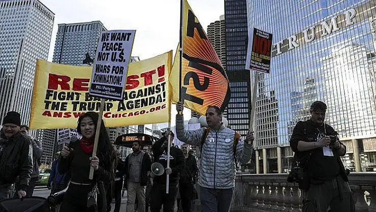 ABD Başkanı Donald Trump'ın emriyle Suriye'nin Humus vilayetindeki Şayrat Hava Üssü'ne düzenlenen füze saldırısı Chicago'da protesto edildi.