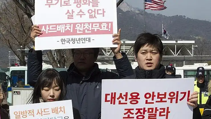 Güney Kore ajansı Yonhap'ın haberine göre, Devlet Başkanlığı Ofisinden yapılan açıklamada, ABD'nin Bölge Yüksek İrtifa Hava Savunması (THAAD) sistemi kapsamında dört füze platformunun ülkeye girişi için izin alınmadığına dair yapılan soruşturma ve akabinde kararlaştırılan çevreye etkisinin detaylı değerlendirmesi için sistemin kurulumunun "şimdilik askıya alınacağı" belirtildi.