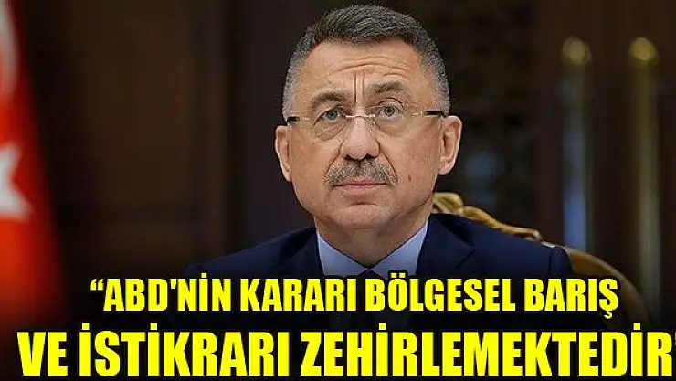 Cumhurbaşkanı Yardımcısı Fuat Oktay, 'ABD'nin GKRY'ye yönelik silah ambargolarını kaldırması bölgesel barış ve istikrarı zehirlemektedir' dedi.