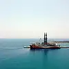 Güney Kore'deki Okpo Limanı'ndan yola çıktıktan sonra 19 Mayıs'ta Mersin'in Taşucu Limanı'na ulaşan sondaj gemisinde, çıkacağı seferler öncesi boyama işlemi yapılıyor.