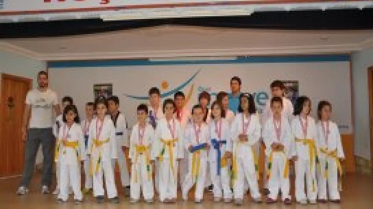 Öğrenciler Taekvondo kulüp faaliyeti içerisinde on iki haftalık bir çalışmanın ardından kuşak terfi sınavına tabi tutuldular