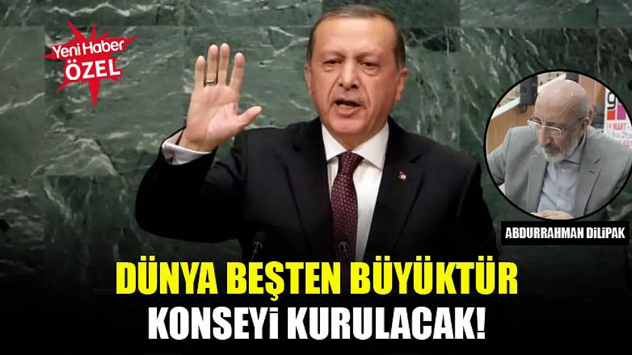 Cumhurbaşkanı Erdoğan'ın gündeme getirdiği 'Dünya 5'ten büyüktür' felsefesinin tüm dünyada büyük yankı uyandırdığını ifade eden Gazeteci-Yazar Abdurrahman Dilipak, bu yankının bir sonucu olarak BM'de 'Dünya beşten büyüktür konseyi' kurulacağını söyledi.