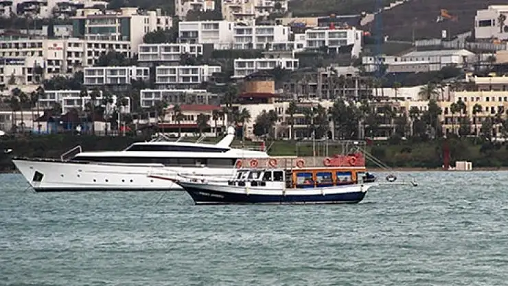 Bitez Mahallesi'nde Bodrum koylarını gezmek için kiraladıkları gezi teknesiyle denize açılan yaklaşık 15 kişilik Japon turist kafilesi, fırtınanın çıkmasıyla kıyıya döndü.
