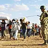Pasaportu olmayanlar ise mayınlı alana gelerek ölüm tarlalarından geçiyor. Kuşatma altında bulunan kentten Türkiye'ye yaklaşık 1.5 milyon insanın gelmesinden endişe edilirken 3 gün önce başlayan ilk göç dalgasında yaklaşık 10 bin Suriyeli'nin Türkiye sınırına yığıldığı bildirildi. Es-selame sınır kapısına 2 kilometre uzaklıktaki Sucu Kasabası'nda muhalifler tarafından oluşturulan güvenlik koridorunda yaklaşık 10 bin Suriyeli Türkiye'ye geçmeyi bekliyor.