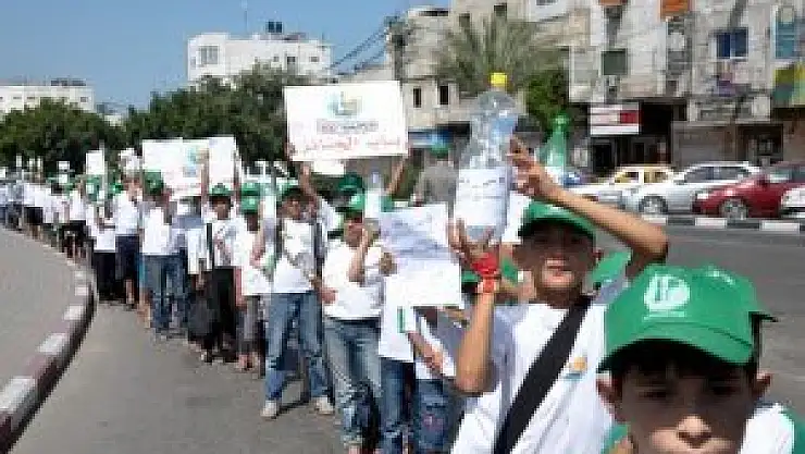 Gazzeli çocuklar, İsrail hapishanelerindeki 'Filistinli tutuklularla' dayanışma çerçevesinde, 'insan zinciri' eylemi gerçekleştirdi.