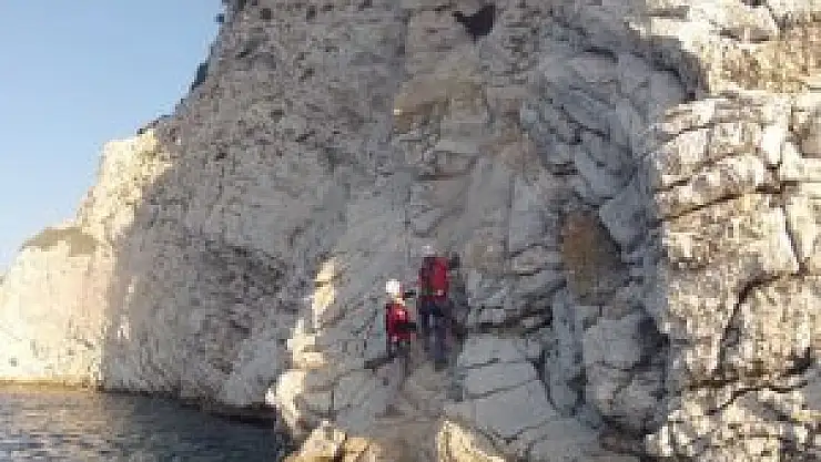 Muğla'nın Marmaris ilçesinde AKUT ekiplerinin kayalıklarda mahsur kalan sahipsiz keçiyi kurtarma operasyonu film sahnelerini aratmadı.