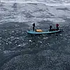 Konya'nın Beyşehir ilçesinde besiciler, adada tek başına kalan atlarına balıkçı teknesiyle yem götürmek için kıyıları donan gölde, buzları kırarak yolculuk yapabildi.