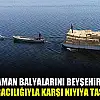 - Adadaki saman balyalarını Beyşehir Gölü'nden 'duba' aracılığıyla karşı kıyıya taşıyorlar