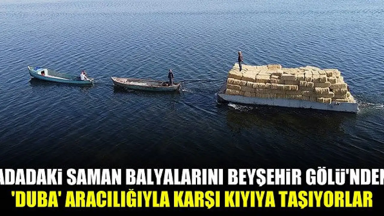 Konya'da Beyşehir Gölü üzerindeki bir adada hububat hasadının sonunda balya haline getirilen samanlar, 'duba' adı verilen taşıma aracıyla gölde yüzdürülerek karşı kıyıya taşınıyor.