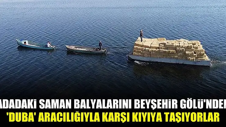 Adadaki saman balyalarını Beyşehir Gölü'nden 'duba' aracılığıyla karşı kıyıya taşıyorlar