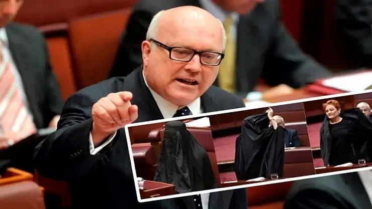 Avustralya Adalet Bakanı Senatör George Brandis'in, parlamentoda burka protestosu yapan ırkçı Pauline Hanson'a verdiği cevap ayakta alkışlandı.